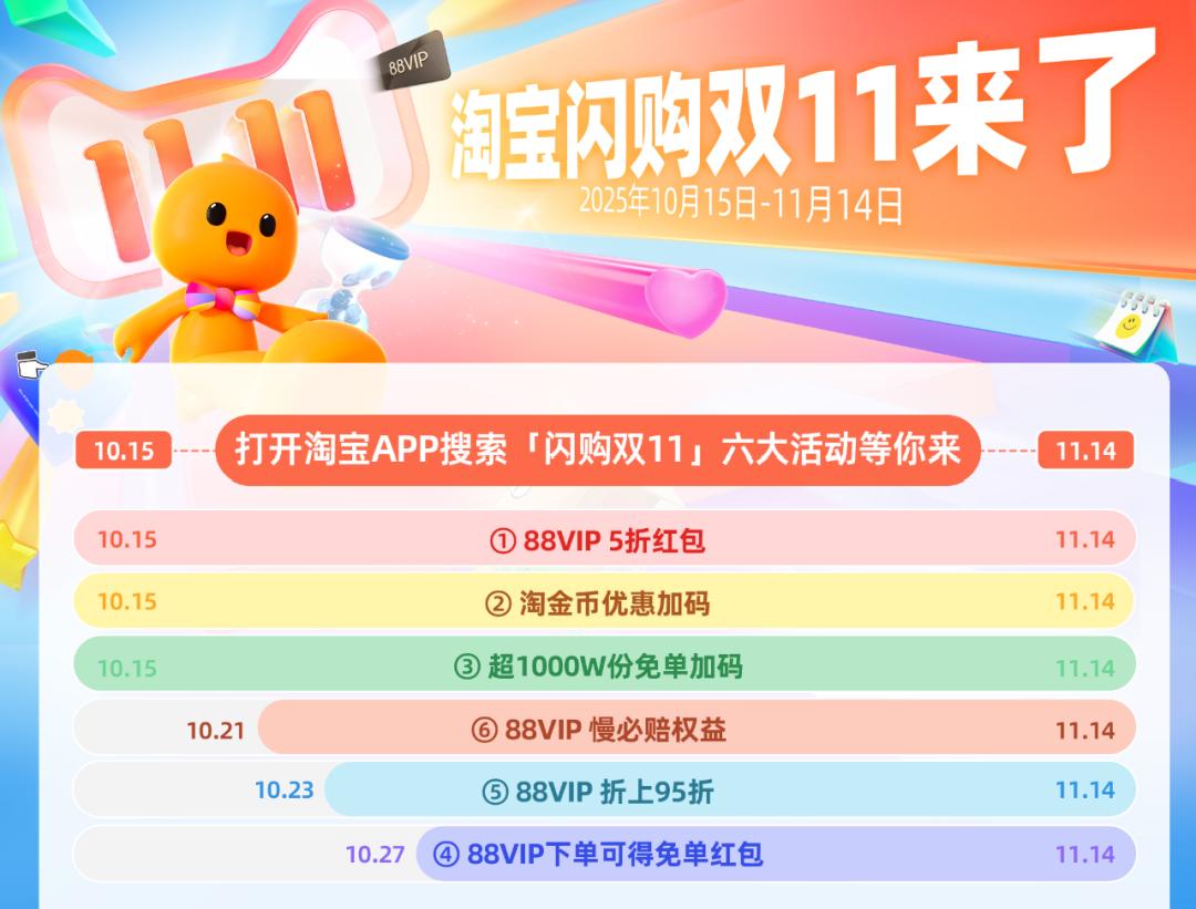 一方面,淘宝闪购在双11期间,通过重磅福利,刺激海量88VIP用户进行即时零售消费,将淘宝平台高粘性、高消费能力的高净值用户,转化为更大的消费力。10月15日至11月14日,88VIP用户进入闪购频道,每日专享两个5折红包,还有折上再打95折等专属福利。整个双11周期,用户搜索“闪购双11”进入活动页面,即可抢超1000万份免单红包。