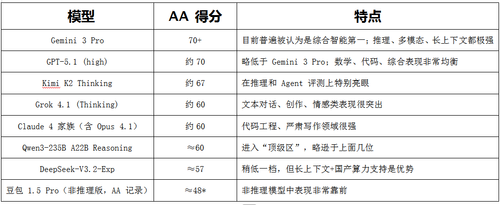 如果用户的使用场景是:竞赛数学、高级逻辑题、极端复杂链式推理等,GPT-5.1、Gemini 3 Pro、Kimi K2 Thinking、Grok 4.1 目前仍然略强。